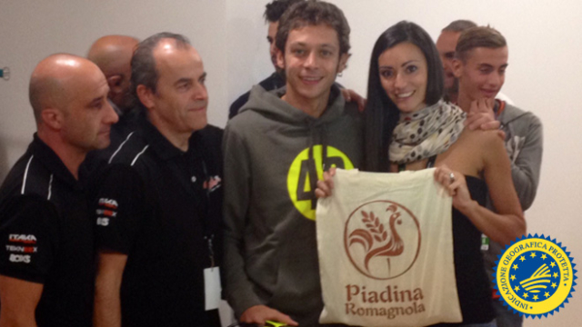“La Piadina Romagnola IGP? Certo che mi piace, è uno dei miei prodotti preferiti”. Queste le parole di Valentino Rossi al momento della consegna di un omaggio rigorosamente romagnolo, appunto la Piadina…