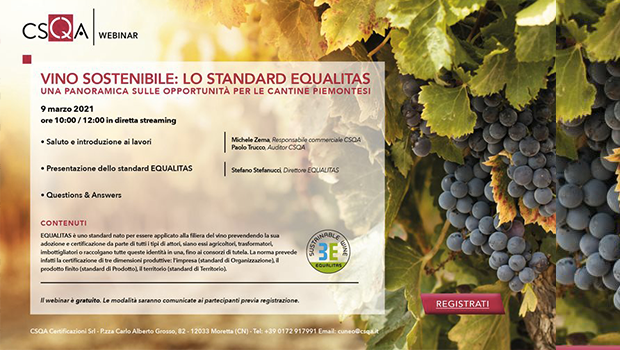 Martedì 9 marzo si terrà il Webinar gratuito standard EQUALITAS, nato per discutere sulle opportunità per le cantine piemontesi e per essere applicato alla filiera del vino prevenendo la sua adozione…