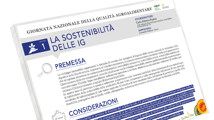 In questa sezione è disponibile, per la consultazione e il download, il report che sintetizza le istanze condivise dal gruppo di lavoro 1. La sostenibilità delle IG. Gli stakeholder sono invitati a leggere, commentare e condividere per sostenere un continuo sviluppo dell’agenda delle attività strategiche della qualità agroalimentare italiana.