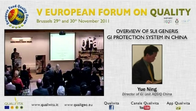 Yue Ning, direttore di GI unit AQSIQ China, al V Forum Qualivita con l’intervento dal titolo Overview of sui generis GI protection system in China.