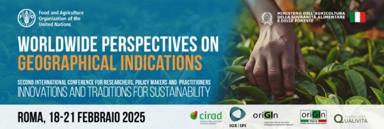 Siamo lieti di annunciare la seconda conferenza “Prospettive globali sulle Indicazioni Geografiche”, che si terrà a Roma, Italia, dal 18 al 21 febbraio 2025. L’evento è organizzato dall’Organizzazione delle Nazioni Unite per l’Alimentazione e l’Agricoltura (FAO) e dal Ministero dell’Agricoltura, della Sovranità Alimentare e delle Foreste (MASAF), in collaborazione con Cirad, IPI, oriGIn, Origin Italia e la Fondazione Qualivita.