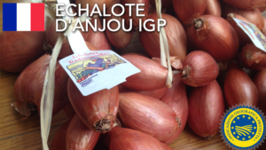 Aspetto e Sapore: L’ Echalote d’Anjou IGP presenta le seguenti caratteristiche organolettiche: soda al tatto, la polpa è rosata e di consistenza tenera. Sviluppa un’intensità aromatica originale con un carattere piccante significativo a livello olfattivo e gustativo. L’Echalote d’Anjou IGP presenta una forma regolare e leggermente allungata e fine con un calibro compreso tra i 20 e i 55 mm e un rapporto altezza/diametro medio superiore a 1,2. Le tuniche dei bulbi sono sottili e luminose, di colore rosso-giallo chiaro o giallo pallido, tendente sempre più al ramato a seconda del grado di maturazione e di secchezza e della durata di conservazione prima della spedizione. Ne esistono inoltre due tipologie: lo scalogno precoce o semi-secco, spedito a inizio stagione; lo scalogno da conservazione o secco, spedito nel resto dell’anno e caratterizzato da un colletto dall’aspetto ben secco.