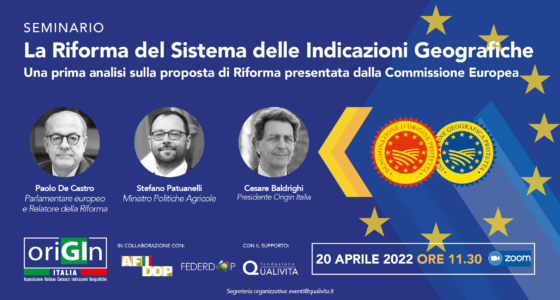 Origin Italia, in collaborazione con AFIDOP, FEDERDOP OLIO e con il supporto di Fondazione Qualivita, organizza in data 20 aprile alle ore 11.30, un seminario volto a fare una prima analisi le previsioni della proposta di revisione del sistema delle Indicazioni Geografiche, presentata dalla Commissione Europea il 31 marzo 2022.