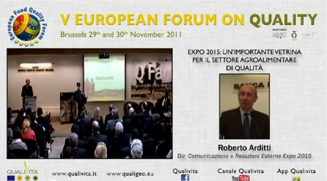 Roberto Arditti, direttore della Comunicazione e Relazioni esterne di EXPO 2015, al V Forum Qualivita con l’intervento dal titolo EXPO 2015: un’importante vetrina per il settore agroalimentare di qualità.