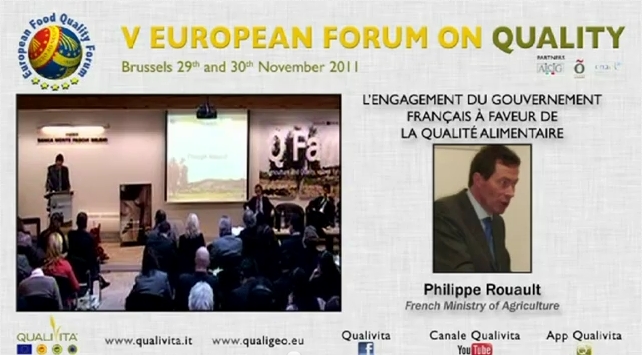 Philippe Rouault, French Ministry Agricolture al V Forum Qualivita con l’intervento dal titolo L’engagement du gouvernement Français à faveur de la qualité alimentaire.