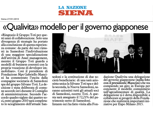 Solo da pochi anni anche il Giappone si è dato un sistema per le Indicazioni Geografiche (Legge n°84 del 2014) come concretizzazione diun processo iniziato nel gennaio 2010 in Italia, a Siena, quando la Fondazione Qualivita ospitò una delegazione della divisione per la Proprietà Intellettuale del Ministero dell’Agricoltura, della Foresta e della Pesca del Giappone, MAFF, che aveva scelto la Fondazione per studiare direttamente i meccanismi che regolano le IG europee e valutare, anche dopo la visita di alcune realtà di produzione DOP IGP del territorio, la possibilità di introdurre un sistema di Indicazioni Geografiche unificato, equivalente al sistema europeo che classifica e tutela i prodotti agroalimentari di determinati territori e regioni. Fino a quel momento, in Giappone, esistevano solo varie forme di riconoscimento di origine per i prodotti tipici, ma non un sistema IG unificato di standard internazionale.