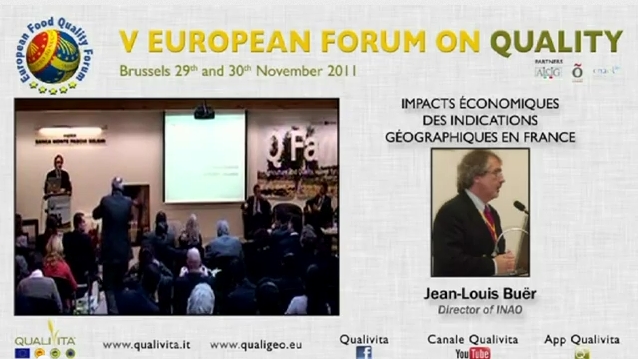 Jean-Louis Buër, di INAO, al V Forum Qualivita con l’intervento dal titolo Impacts économiques des indications géographiques en France.