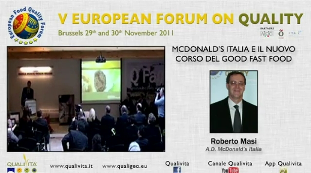 Roberto Masi di McDonald’s Italia al V Forum Qualivita con l’intervento dal titolo McDonald’s Italia e il nuovo corso del good fast food.