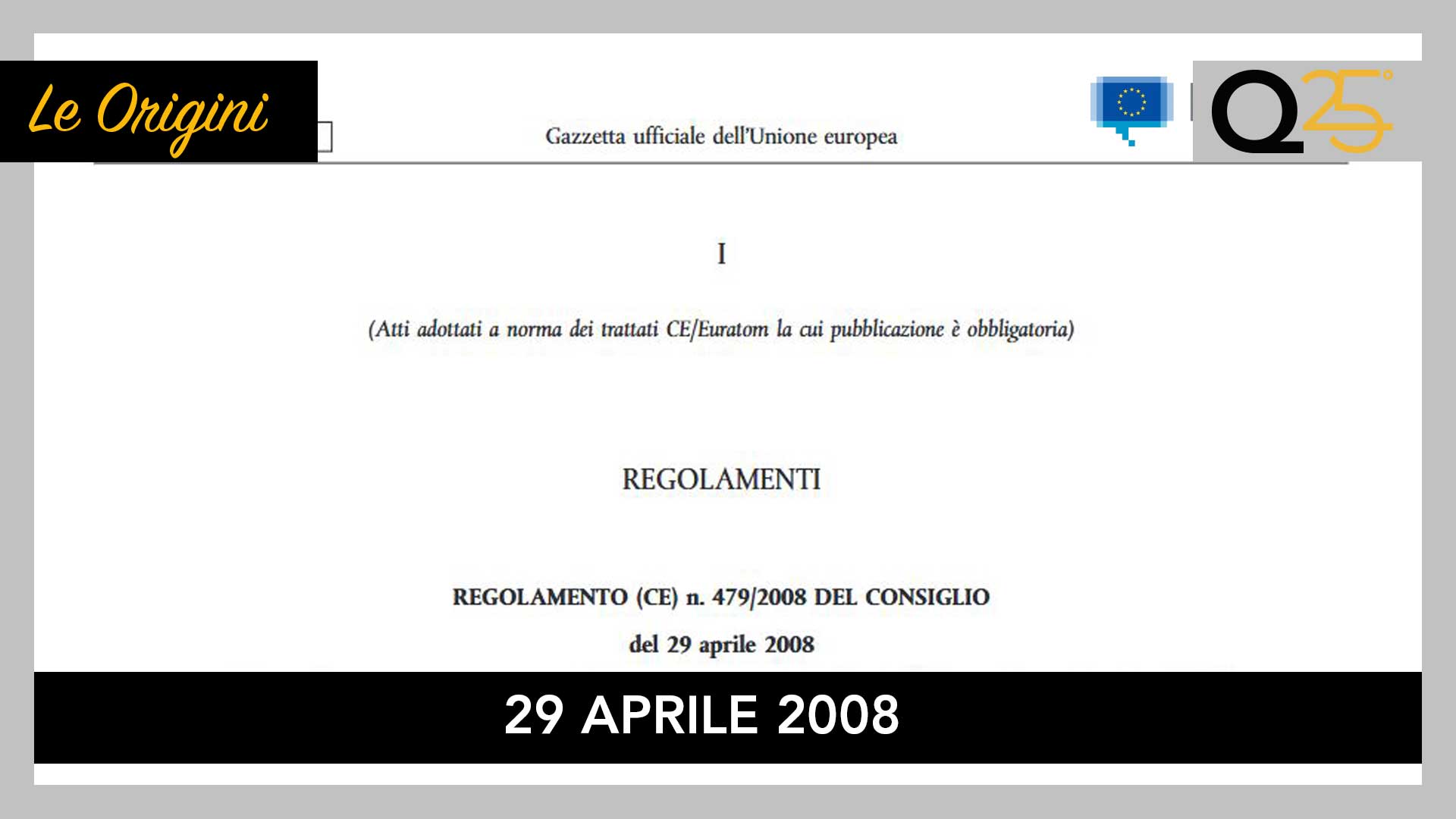 Formalmente adottato dal Consiglio europeo nell'aprile del 2008, il Regolamento UE n. 479/2008 introduce una vasta riforma dell'organizzazione comune del mercato vitivinicolo (OCM). Vengono istituite le nuove regole per i vini di qualità e le denominazioni di origine che rendono più omogenea la normativa fra il settore agroalimentare e quello vitivinicolo DOP IGP.