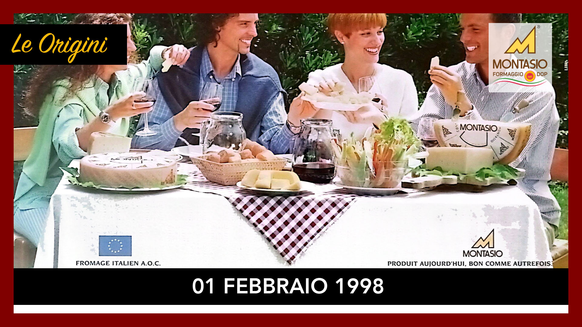 Nel 1998, due anni dopo la registrazione europea del Montasio DOP, il Consorzio di Tutela lancia in Francia una campagna pubblicitaria con il claim "Prodotto oggi, buono come una volta". L'obiettivo era rafforzare la presenza del formaggio nel mercato francese, esaltandone la qualità e la tradizione. La comunicazione valorizzava il riconoscimento europeo, utilizzando la menzione familiare ai francesi Appellation d’Origine Contrôlée (A.O.C.) per sottolineare l’origine certificata e favorire il posizionamento del Montasio tra i formaggi d’eccellenza.