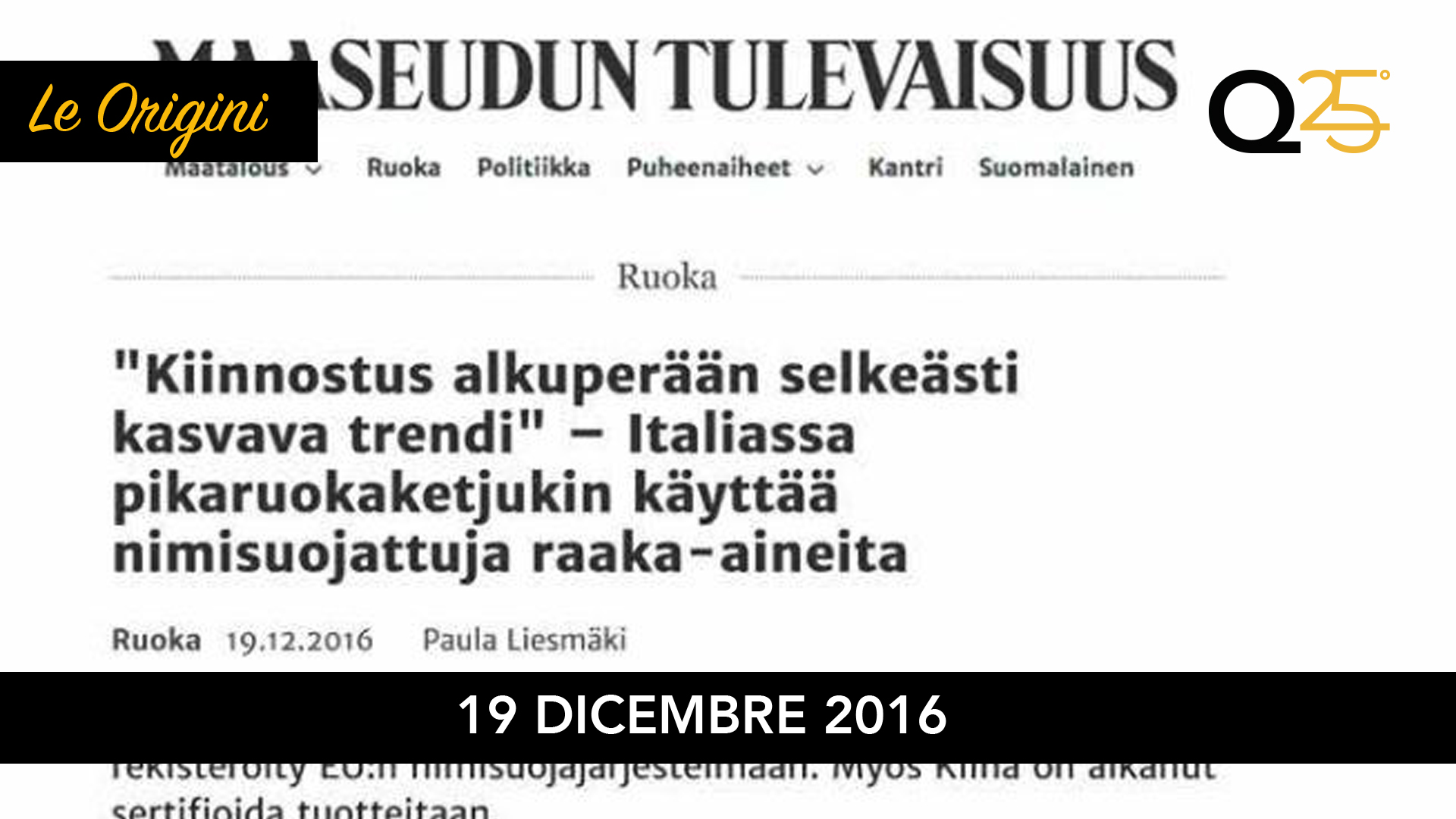 Si rafforzano i legami tra il sistema delle Indicazioni geografiche italiano e la Finlandia dopo gli incontri che si sono tenuti nei giorni scorsi ad Helsinky fra la Fondazione Qualivita ed gli esponenti delle organizzazioni di settore del paese artico.