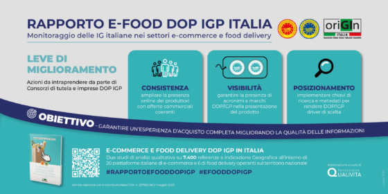 Pubblicato il Rapporto e-food DOP IGP Italia realizzato da Origin Italia in collaborazione con Fondazione Qualivita per analizzare attraverso due studi specifici il mercato digitale dell’e-commerce e del food delivery dei prodotti DOP IGP italiani. Obiettivo comune delle due ricerche, realizzate con il contributo del Ministero dell’agricoltura, della sovranità alimentare e delle foreste, è esaminare in dettaglio la presenza e l’andamento dei prodotti DOP IGP sulle piattaforme di e-commerce e food delivery in Italia esplorando le trasformazioni delle abitudini alimentari e di spesa dei consumatori.