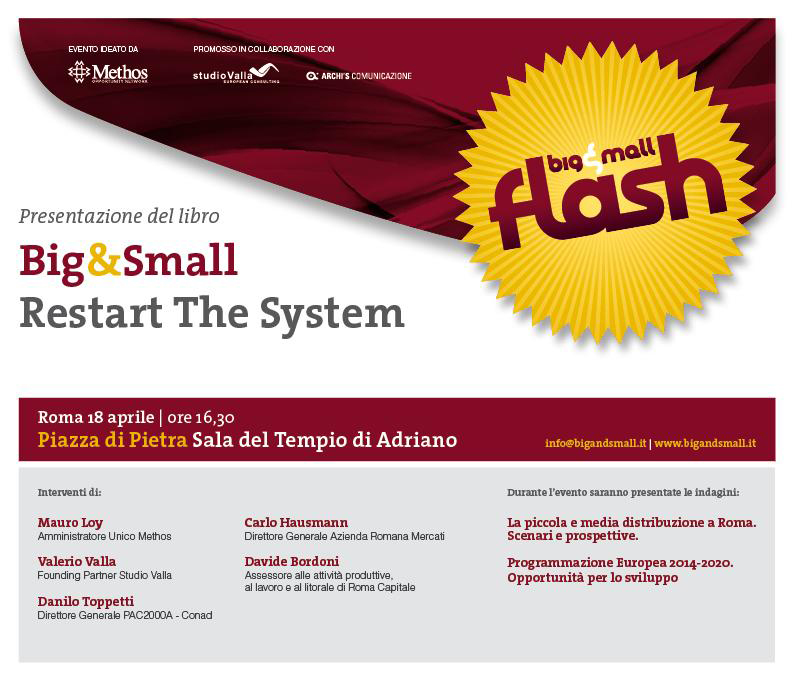 Il 18 aprile alle 16,30  a Roma presso la sala del Tempio di Adriano ( Piazza di Pietra) avverà la presentazione della pubblicazione editoriale “Big&Small, Restart the system”.