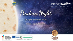 Piadina Night è un evento promosso dal Consorzio di Tutela e Promozione della Piadina Romagnola IGP nell’ambito del PSR Emilia-Romagna. Al suo fianco partecipano molti Consorzi DOP IGP italiani: Consorzio Salumi Piacentini, Consorzio Parmigiano Reggiano, Consorzio di Tutela della Cipolla Rossa di Tropea Calabria, Consorzio del Prosciutto di Parma, Consorzio Pesca e Nettarina di Romagna.